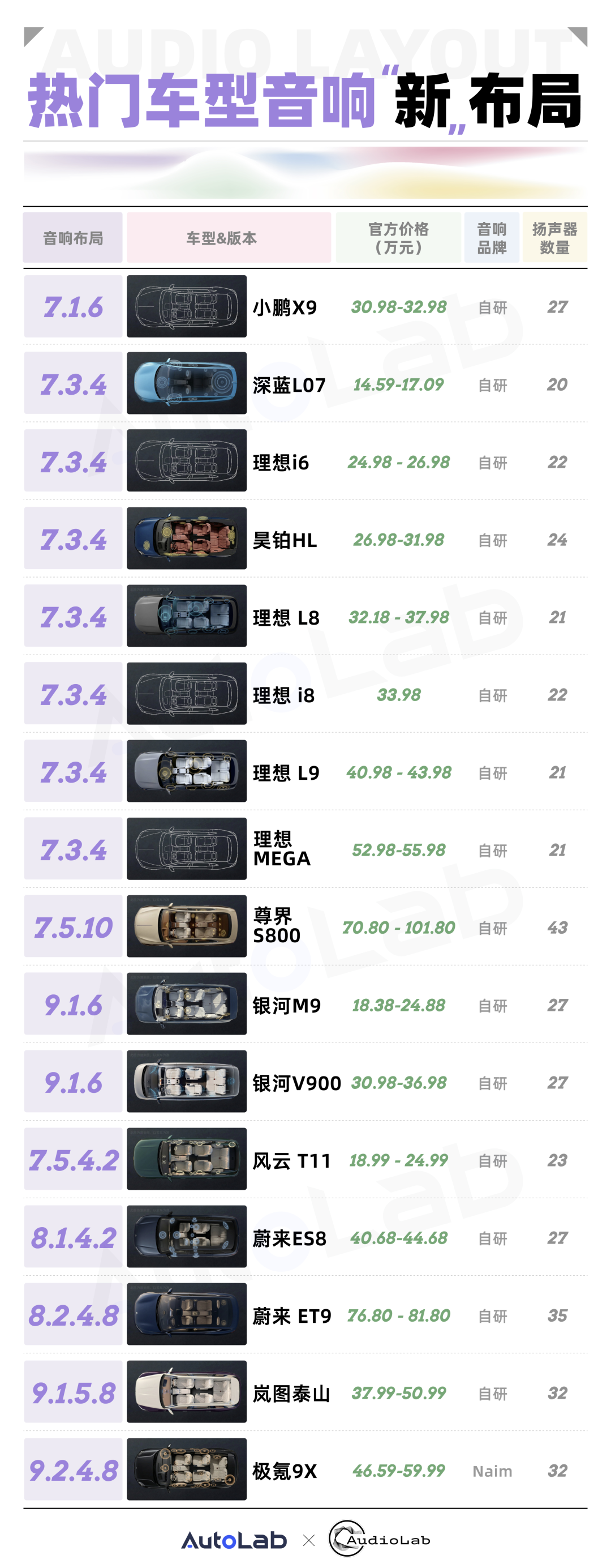 今天,我们也为大家盘点一些进行了“布局创新”后,带着“超 7.1.4”声道亮相的热门车型。