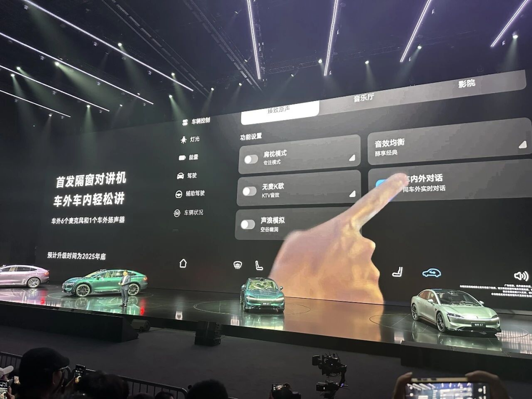 类似的功能其实早就出现了,只不过呈现方式都是车内对外喊话,以单向交流为主,智界R7的隔窗对讲则是实现了车内车外的双向沟通。