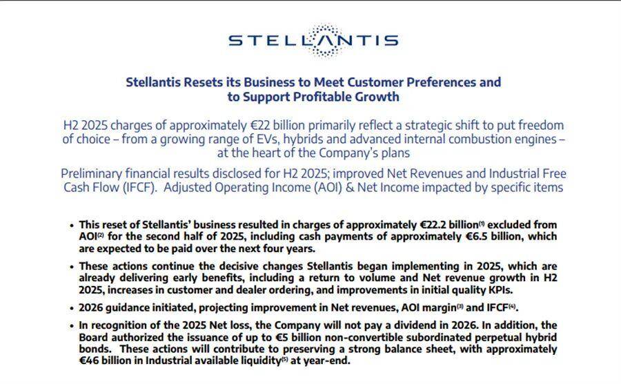 日前,Stellantis集团发布的电动汽车战略重大调整公告——预计产生高达222亿欧元(约合260亿美元、1804亿元人民币)的非现金减值损失,这一数字是市场预期20亿欧元的十倍以上。