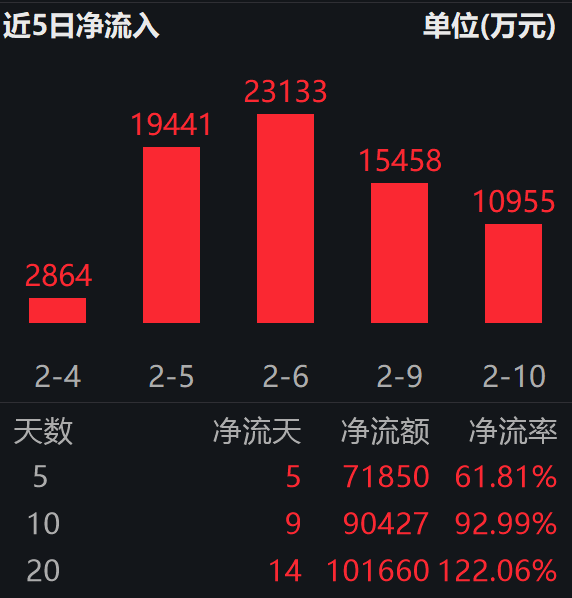 港股通消费ETF易方达(513070)跟踪中证港股通消费主题指数,近日持续受资金青睐,连续5日获资金净流入,合计超7.1亿,近10日“吸金”超9亿。截至2月10日,该基金最新规模达19.73亿。