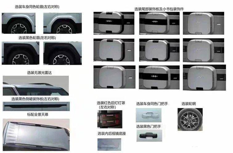 配置部分,新车标配全景天幕,激光雷达、拖车钩等都支持选装。同时,用户还能根据喜好选择车身同色/黑色轮眉、黑色侧裙、红色尾灯罩、不同风格轮毂、专属装饰件等,兼顾实用与个性化需求。