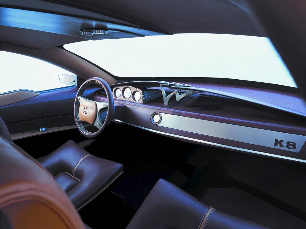 K8的内饰设计强调简洁线条,仪表板、车门、方向盘和座椅均采用赭石色皮革包裹,营造出温暖而高贵的氛围。宽敞的驾驶舱可容纳四个独立座椅,为乘客提供充足的空间。在设计细节上,设计师试图强调品牌的延续性,格栅和方向盘中央都饰有带有瑞士和西班牙国旗的大型徽章,转向灯上则装饰着著名的飞鹳标志,以纪念一战时期的法国王牌飞行员。
