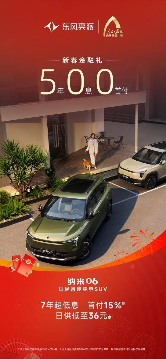 “国民智趣纯电SUV”纳米06同样诚意登场,除可享5年0息0首付的新春金融礼,还支持7年超低息、首付15%起、日供低至36元起金融方案。纳米06作为“天元智能”品牌技术的首款量产国民纯电车型,立足“实用、灵活、可靠”的核心价值,率先将超越同级的智能体验带入国民车,凭借可靠的智能辅助驾驶、个性化的智能座舱交互、越级的空间表现以及20余项主动安全配置等产品实力,为用户提供高价值的智趣出行新选择。同时,叠加新春福利权益,进一步降低纳米06入手门槛,让更多消费者轻松体验高品质出行。