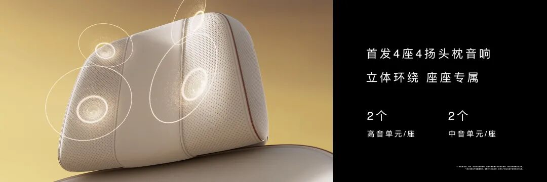 不仅首发了华为悦彰非凡系列拥有43个扬声器,还有行业首发的四座四头枕扬声器,以及针对高端商务场景进行的声音私密性处理。