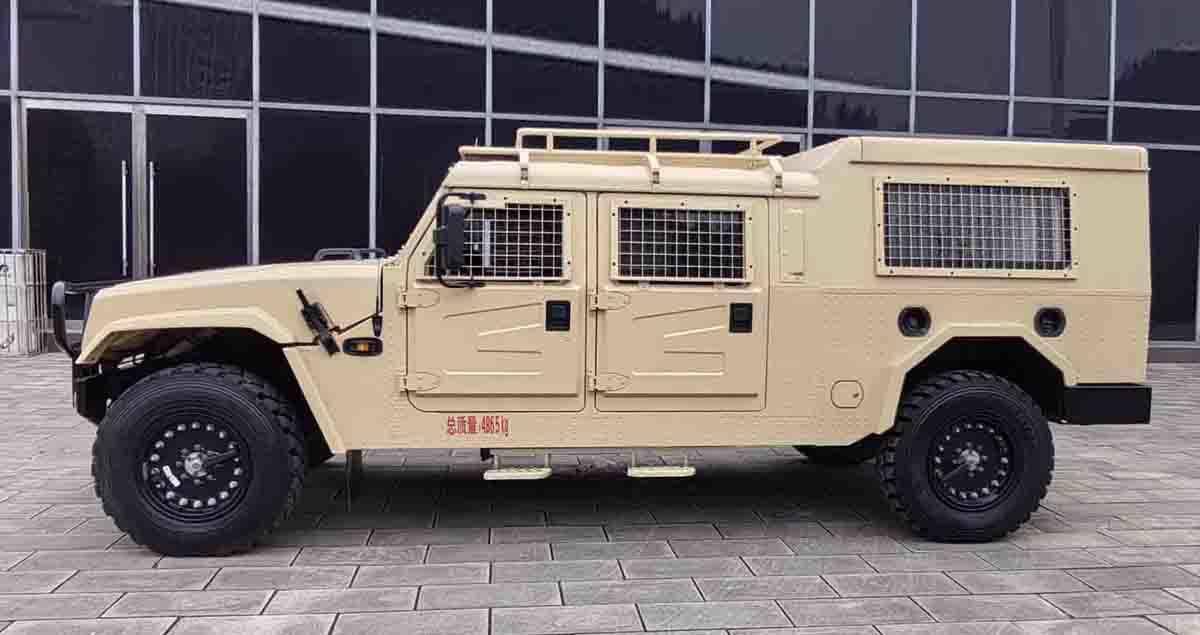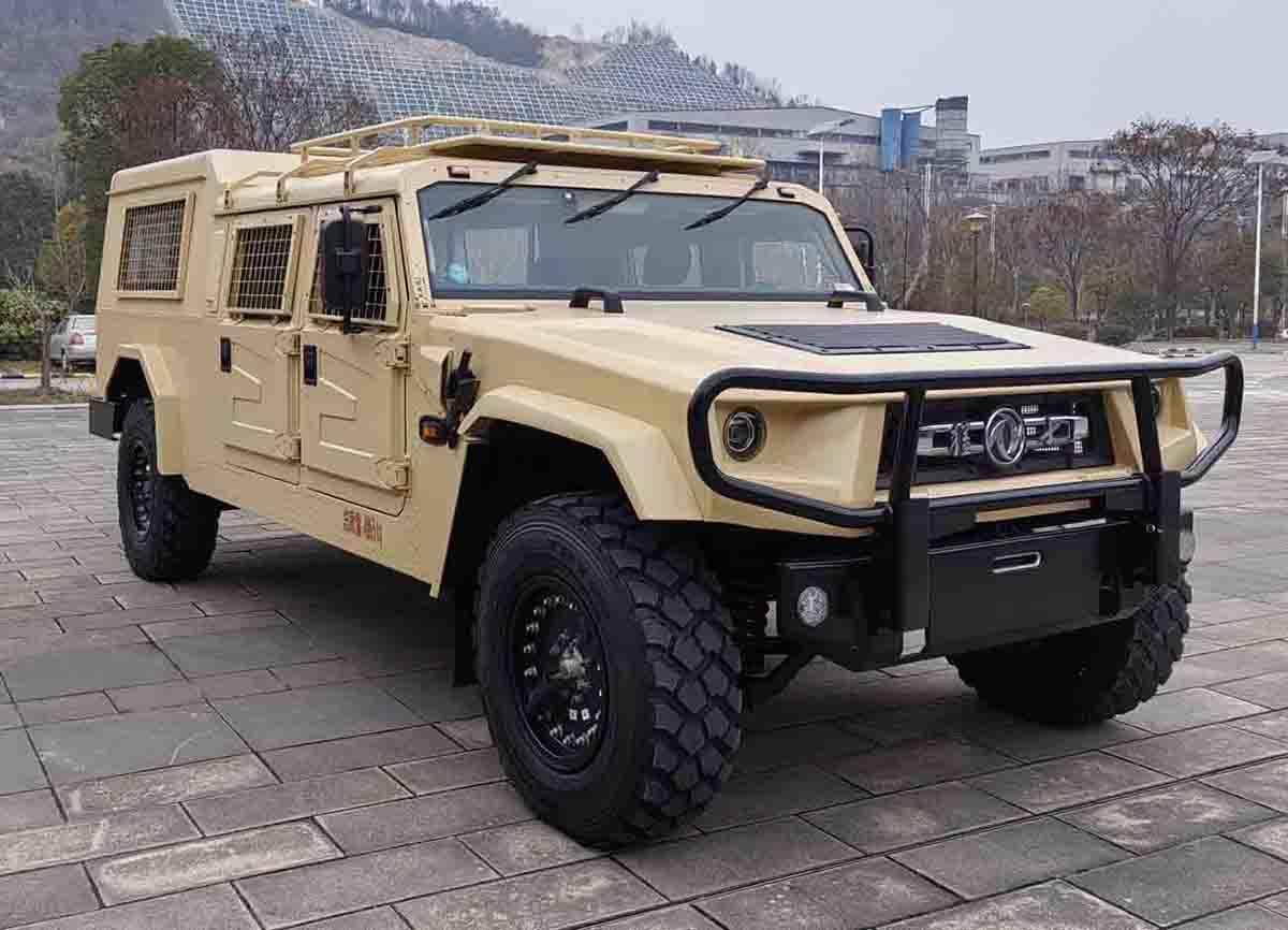 新车的外观整体造型和东风猛士M50基本一致,前脸造型粗犷硬朗,使用了圆形的大灯,镀铬中网上带有猛士字样,前杠增加了牛栏护杠。