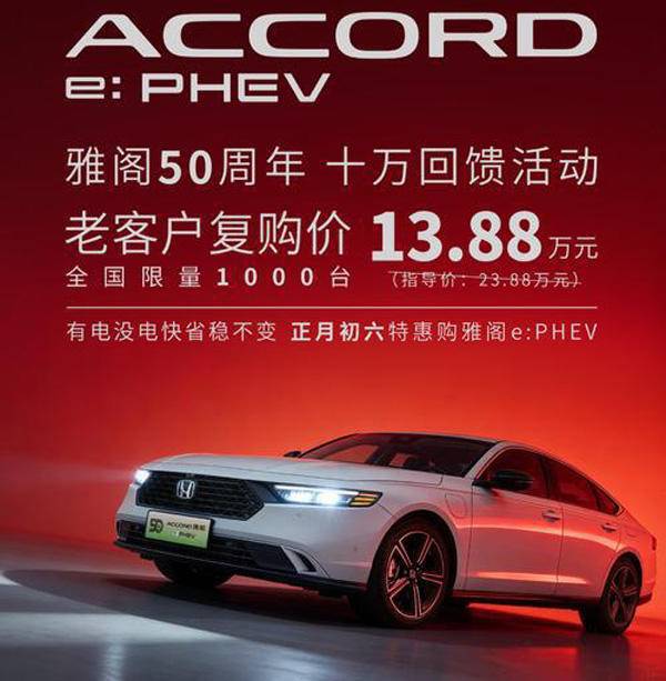 《车矩阵》车市导购:2026春节假期尚未结束,车市终归还处于平静之中,厂家大多还未复产。2月22日,广汽本田却用一个新春的政策给这平静的车市带来了波澜,为庆祝雅阁(参数|询价)50周年,广汽本田宣布针对老客户复购指导价为23.88万元的雅阁e:PHEV车型,仅需13.88万元,限量仅1000台。
