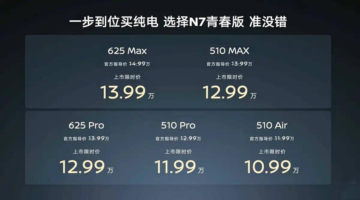 N7青春版在2月24日也上市了,此次的新车共推出5款车型,官方售价11.99-14.99万元,上市限时价10.99-13.99万元。外形上,日产N7青春版与现款车型的设计保持一致,用的也是新能源化的极简风格前脸设计。