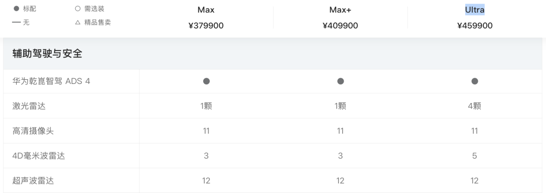 岚图泰山和华为深度合作,全系搭载华为ADS 4,其中顶配Ultra版搭载华为L3智能架构,配备4颗激光雷达,具备L3自动驾驶潜力。