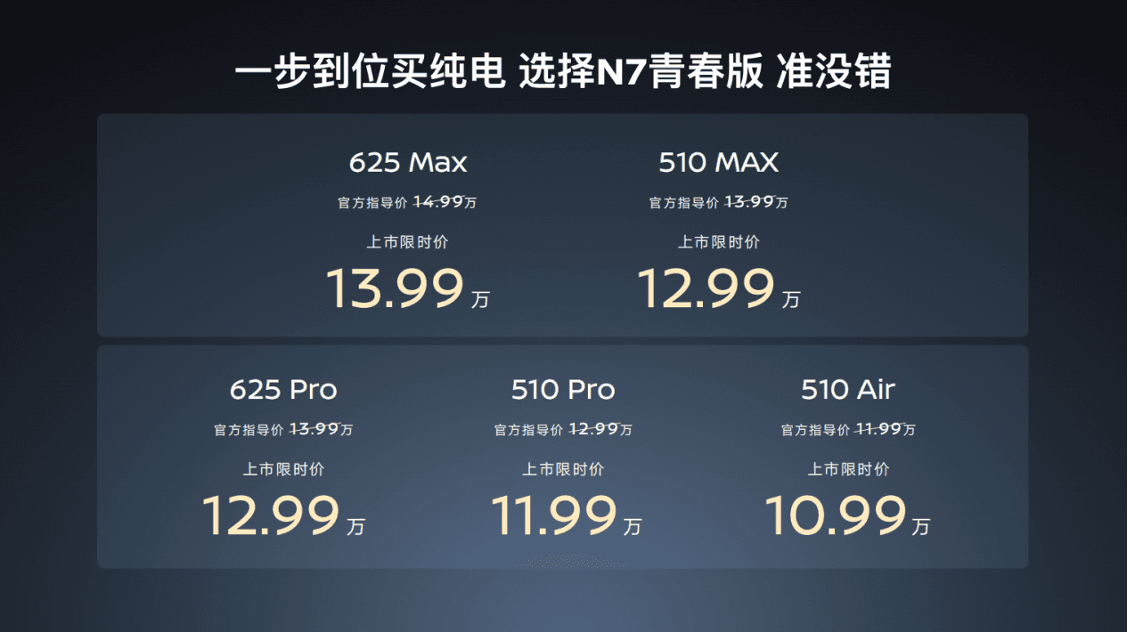 为了让更多家庭,轻松拥有这款越级品质的纯电轿车,N7青春版焕新而来。