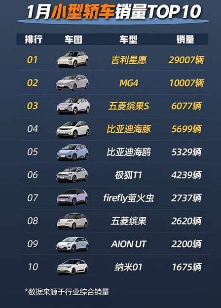 在1月份汽车市场冷淡的背后,被冲击最大的市场就是小型车,吉利星愿(参数|询价)排名第一,售出29007辆,这个成绩相当客观,但是相较于25年的12月份,依旧是少了将近1万辆的成绩,但是1月份大部分车型的销量都有所下滑。