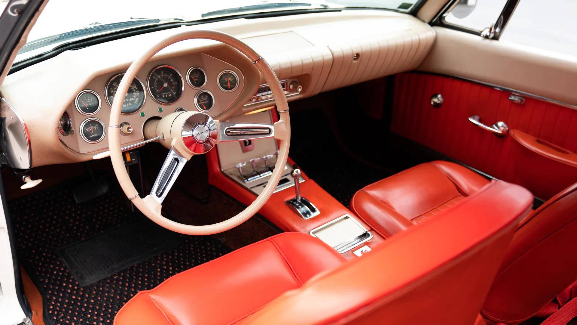 Avanti这个名字来自意大利语,意为"向前"或"前进"。整辆车的设计充满创新:没有传统的前格栅,进气口被安置在前保险杠下方,成为所谓的"底部进气"设计——这一理念在1980年代后才逐渐普及。车身采用玻璃纤维材质,由制造过1953年款雪佛兰克尔维特车身的俄亥俄州阿什塔比拉模压玻璃纤维公司负责生产。Avanti还配备了由Bendix公司按授权生产的英国邓禄普设计前盘式制动器,成为美国首款在量产车型上提供此配置的汽车。
