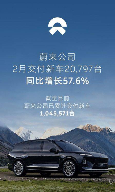 蔚来汽车2月交付新车20,797 台(其中蔚来品牌15,159 台,乐道品牌 2,981 台,萤火虫品牌 2,657 台),环比-23.5%,同比是上涨了57.6%,充电桩的增加以及电池的质量的提升,都让纯电车型的销量逐步增大,轻混到插混/增程再到纯电,这就是趋势,蔚来的销量未来还会增加,毕竟目前干纯电的车企,没几家了。