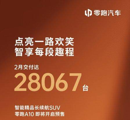 根据各家车企公布的销量来看,首先就是新势力方面,零跑汽车2月交付28067台,环比-12.45%,但是同比是增长了10.99%。这个销量数据在新势力车企中依旧是处于领先地位,接下来零跑A10、零跑D19、零跑D99都将与我们见面,2026年100万的销量目标能否达成,我们拭目以待。