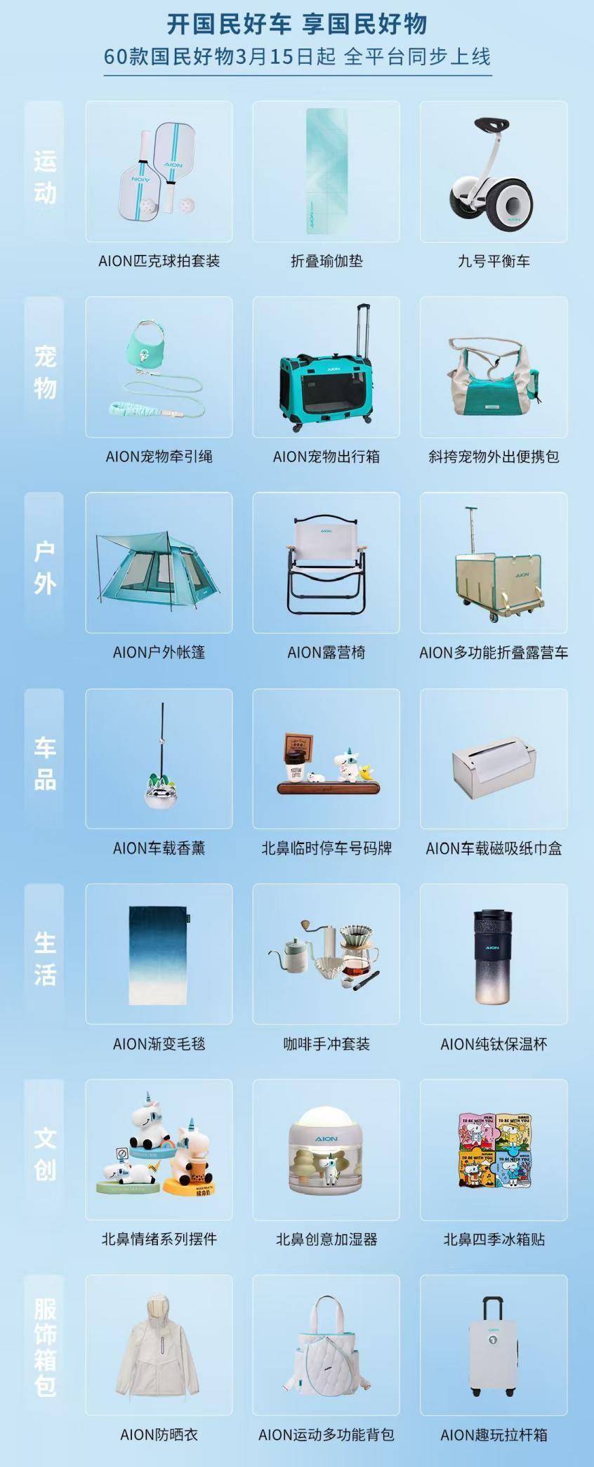全新国民好物基于近200万车主洞察打造,以“好而不贵、安全可靠”为核心,首批推出60余款产品,涵盖户外露营、萌宠潮玩、养生疗愈等多元场景,3月15日将在埃安APP、京东等平台同步上线。好物兼顾严选、联名与用户共创,让车从出行工具变为移动生活空间。
