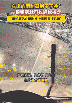 如果雨刮器刮不干净可以用铅笔芯在雨刮片上来回擦几遍,擦完之后既能让刮水的效果变好,还能够让雨刮器更加安静。因为雨刮片和车玻璃之间的压力较大,如果没有足够的润滑,雨刮器就会在玻璃上弹跳;所以用铅笔芯粉末实现润滑,效果就会变好。