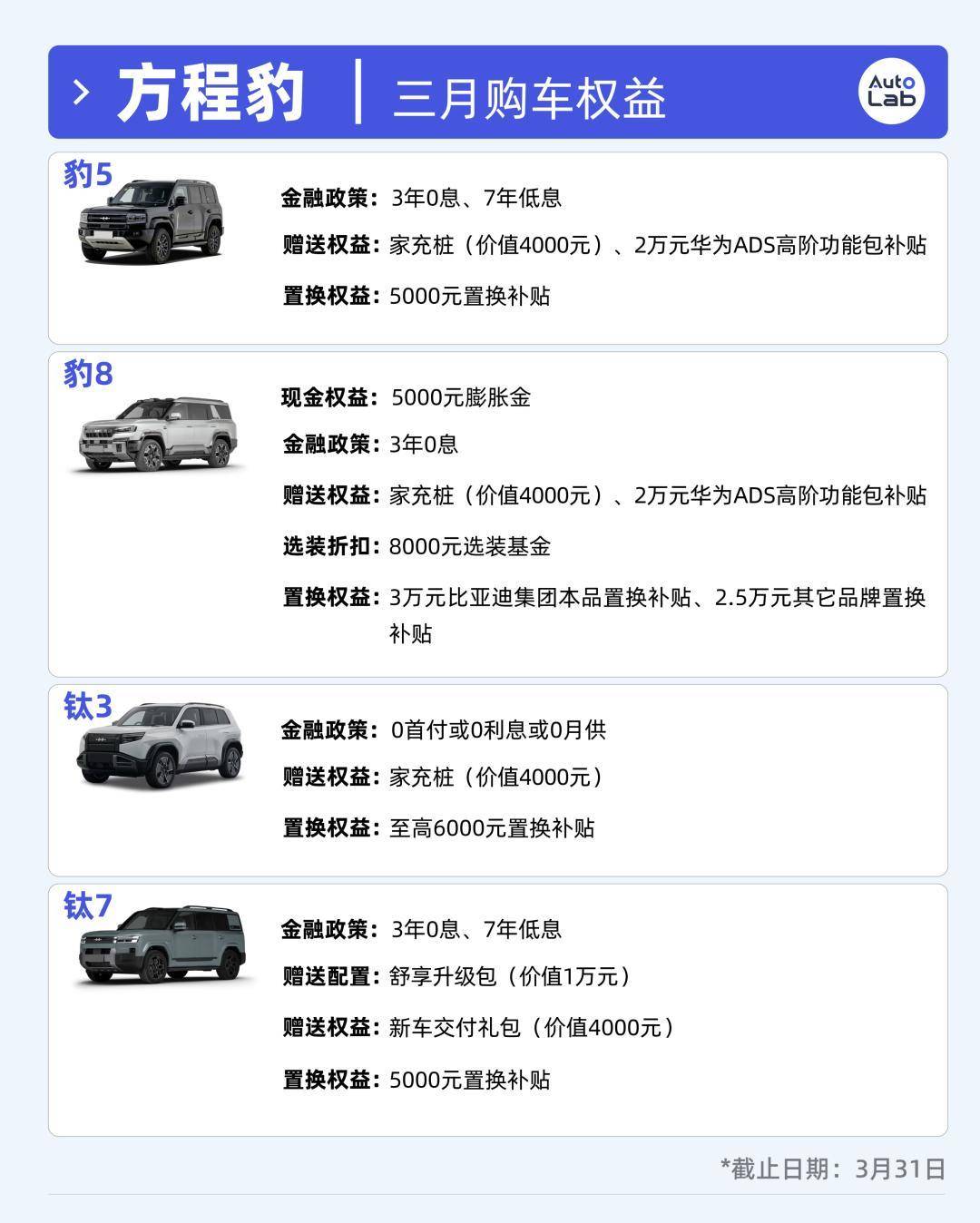 还是按照惯例,我们为大家归纳了3月各大车企的优惠政策以及权益,供近期有购车需求的朋友们一定的参考。