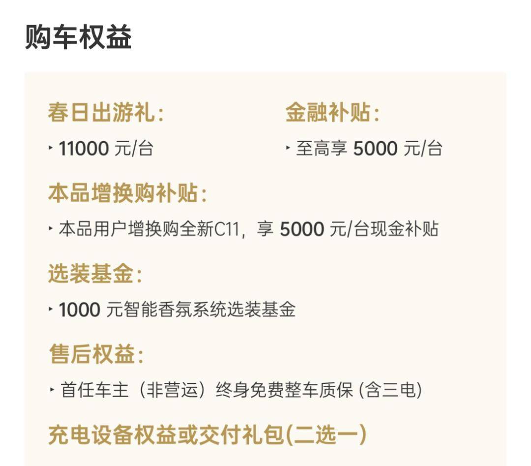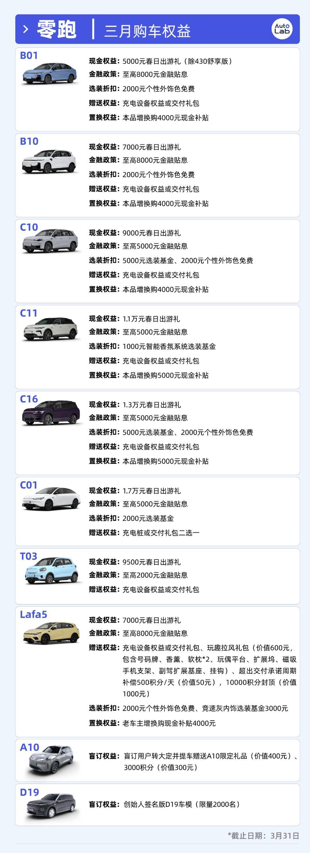 以C11为例,权益金额相比2月再加5000元,总额来到了1.1万元;而像是Lafa5、B10、B01等热销车型,也有2000元的上调。