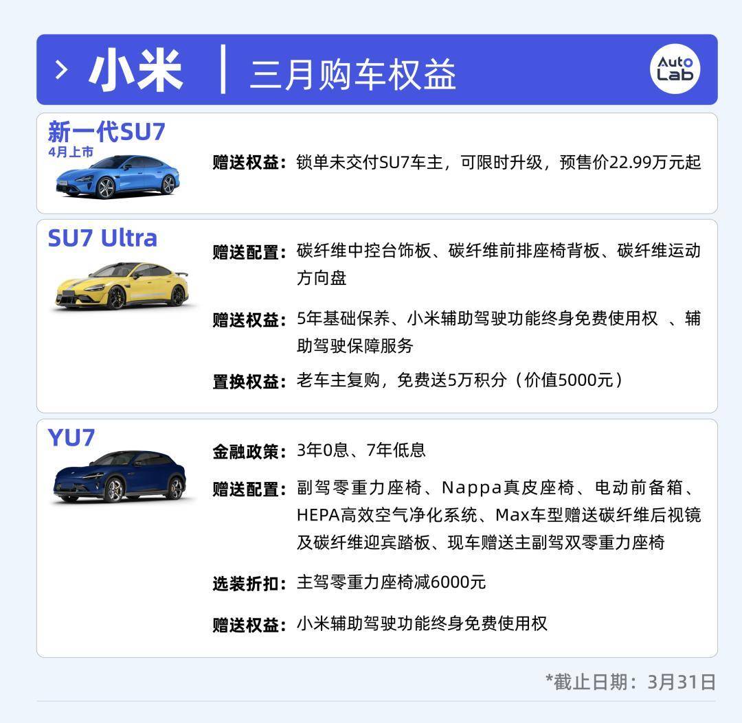小米YU7相比2月的政策略有缩水。