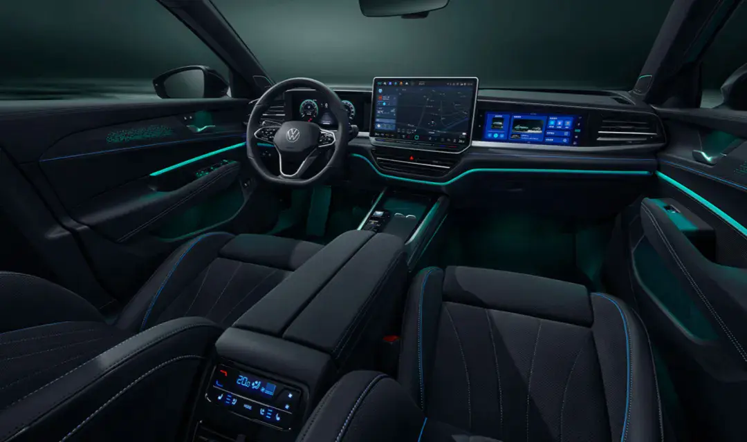 品质也要比朗逸新锐高出很多,前后贯穿式发光灯带与发光Logo,车内配备12.9英寸中控大屏+10.25英寸液晶仪表并支持AR实景导航投屏,换挡方式改为怀挡。