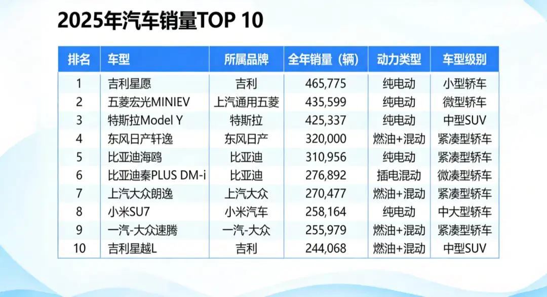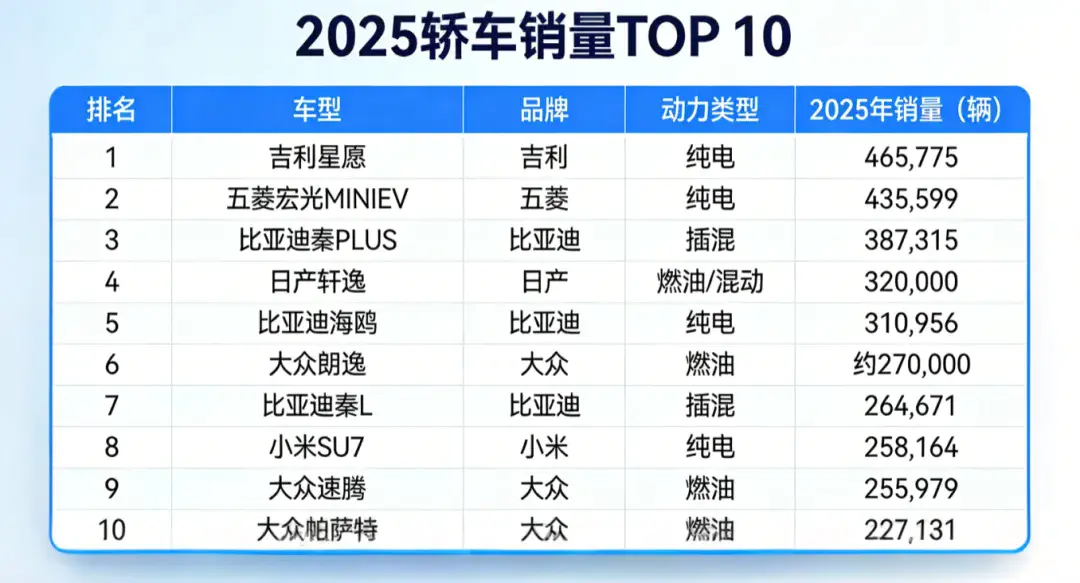 买车不看销量,就像隔着屏幕网恋一样,可能聊得来,但大概率走不远。今天第一期,先盘2025年轿车销量TOP 10。