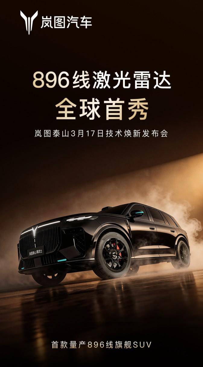 全球首款896线四激光量产SUV,岚图泰山Ultra/黑武士17日上市