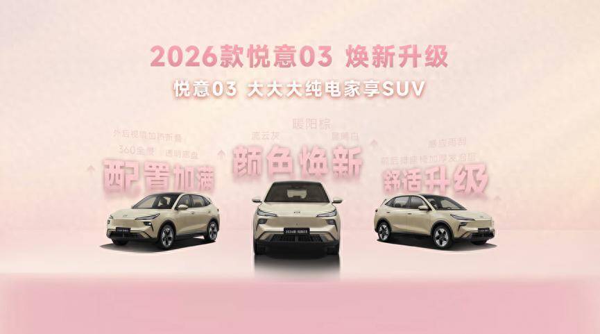 2026 款悦意 03 的上市,精准踩中了年轻家庭纯电出行的需求痛点:亲民的价格、实用的配置、宽敞的空间、靠谱的品质,再加上懂女性、懂家庭的细节设计,让它成为 10 万级纯电家庭 SUV 的优选。张若昀说它是 “真舒适的纯电 SUV”,其实更是 “真懂家庭的纯电 SUV”。7.98 万的起售价,就能拥有一辆适配全家出行、兼顾舒适与实用的纯电 SUV,这样的选择,无疑是给家庭最好的春日礼物。春光正好,开着悦意 03,带着家人奔赴山海,让每一次出行都满是悦意。