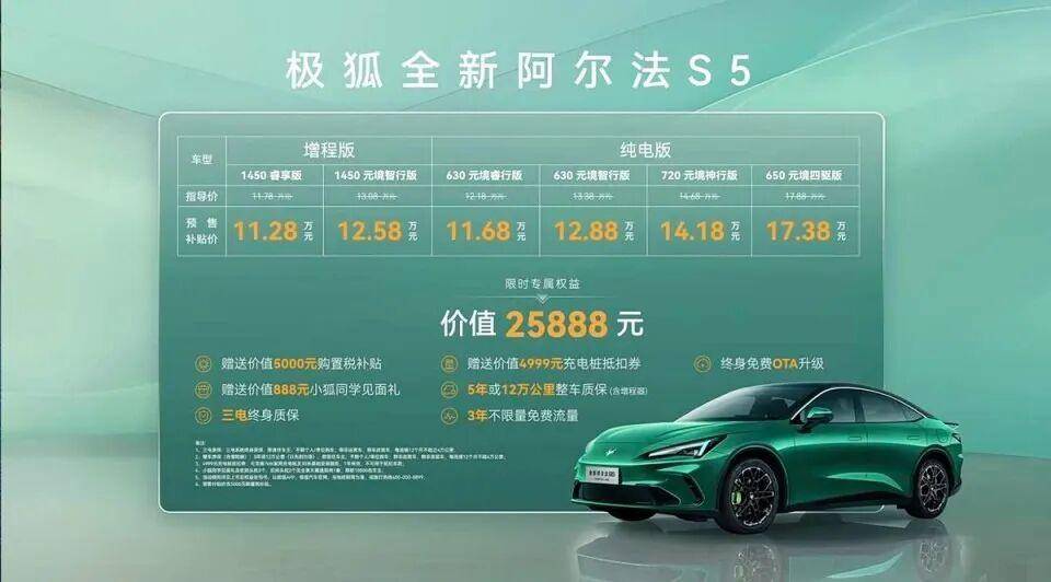 再等5天上市!新款阿尔法S5预售补贴价11.28万,颜值不输小米SU7