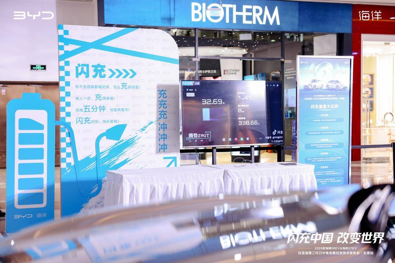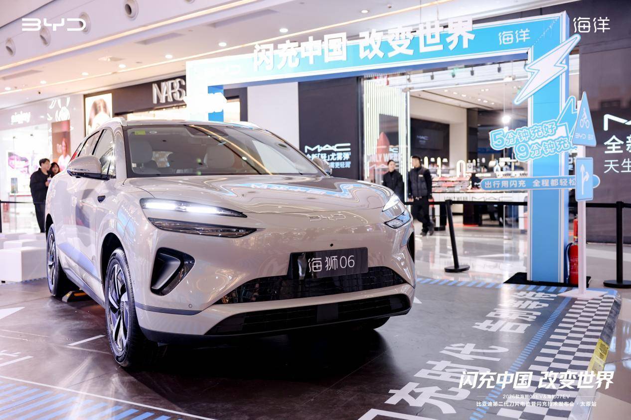 2026 年 3 月 14 日,“闪充中国 改变世界” 比亚迪第二代刀片电池暨闪充技术发布会・太原站圆满举办。比亚迪海洋网携 2026 款海狮 06EV、海豹 07EV 双车重磅登陆三晋大地,以第二代刀片电池与兆瓦级闪充技术为核心,为太原及山西消费者带来 “告别补能焦虑、畅享纯电自由” 的全新出行选择,正式开启全民闪充新时代。