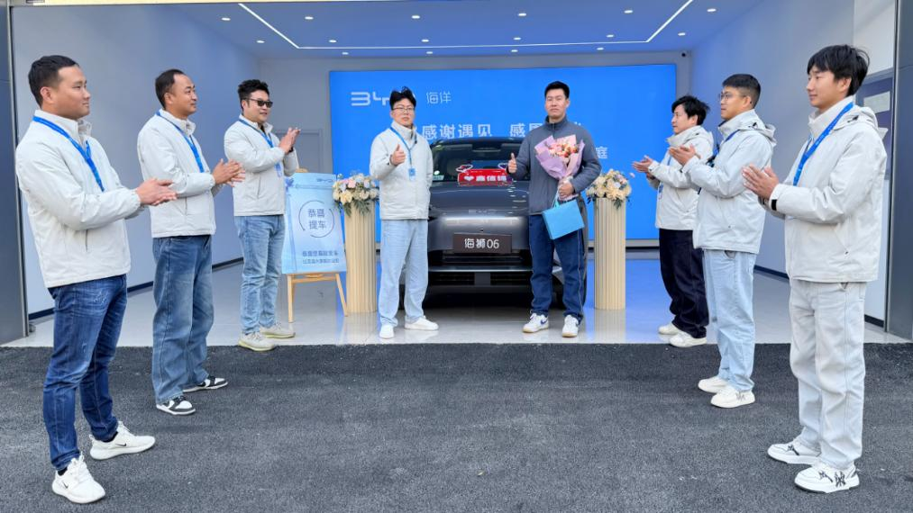 交付仪式上,海洋网4S店人员向首批车主递交了新车钥匙,并送上诚挚祝福。现场氛围温馨而热烈,车主难掩喜悦之情,分享了自己对2026款海狮06EV的期待与信任。车主表示:“从闪充技术发布就开始关注,充电快、续航长,真正解决了日常用车的核心痛点,今天提车非常激动。”