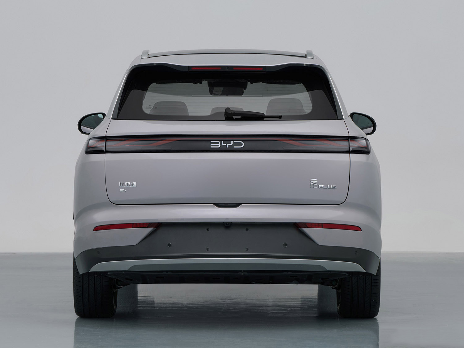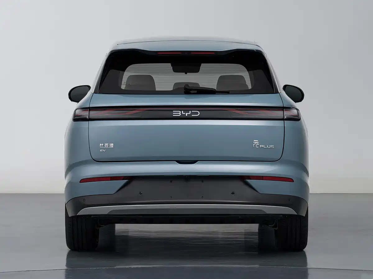 来到车尾,新款元PLUS配备了大尺寸的后扰流板,内部嵌有双段式的高位刹车灯组,一字型的贯穿式尾灯组与旧款车型也有很大的不同,灯组内部带有流线造型光源,在夜间点亮后可以带来更好的辨识度。牌照框依旧被放在了尾门下方,在保险杠的下方还有着银色饰板,具备了不错的层次感。