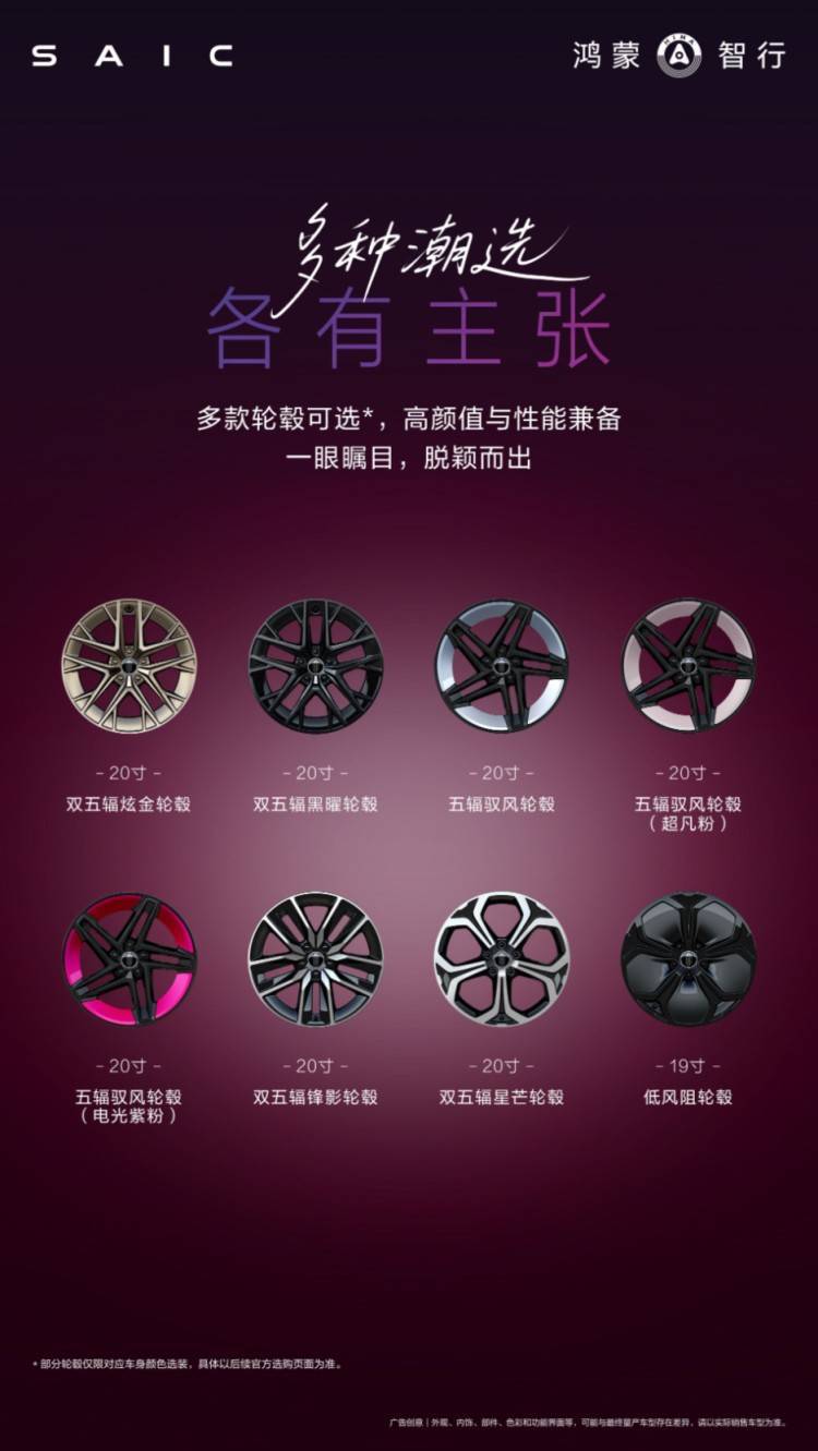 从最近工信部的披露信息来看,尚界Z7提供了琥珀金绿、电光紫粉和晚山新绿等足足9款个性化颜色,不论你是男生还是女生,都能选到心动色,再也不用为选车色而纠结,每一款都很上镜。像这次的电光紫粉就非常的吸睛,阳光明媚优雅时尚,简直就是为时尚人群量身定制的精致出行搭子。不光是有多款个性车色,尚界Z7还提供了多款运动轮毂,与靓丽的车色非常契合。例如,电光紫粉车身配色,再配合低趴长车头设计,开尚界Z7出门,回头率爆棚。