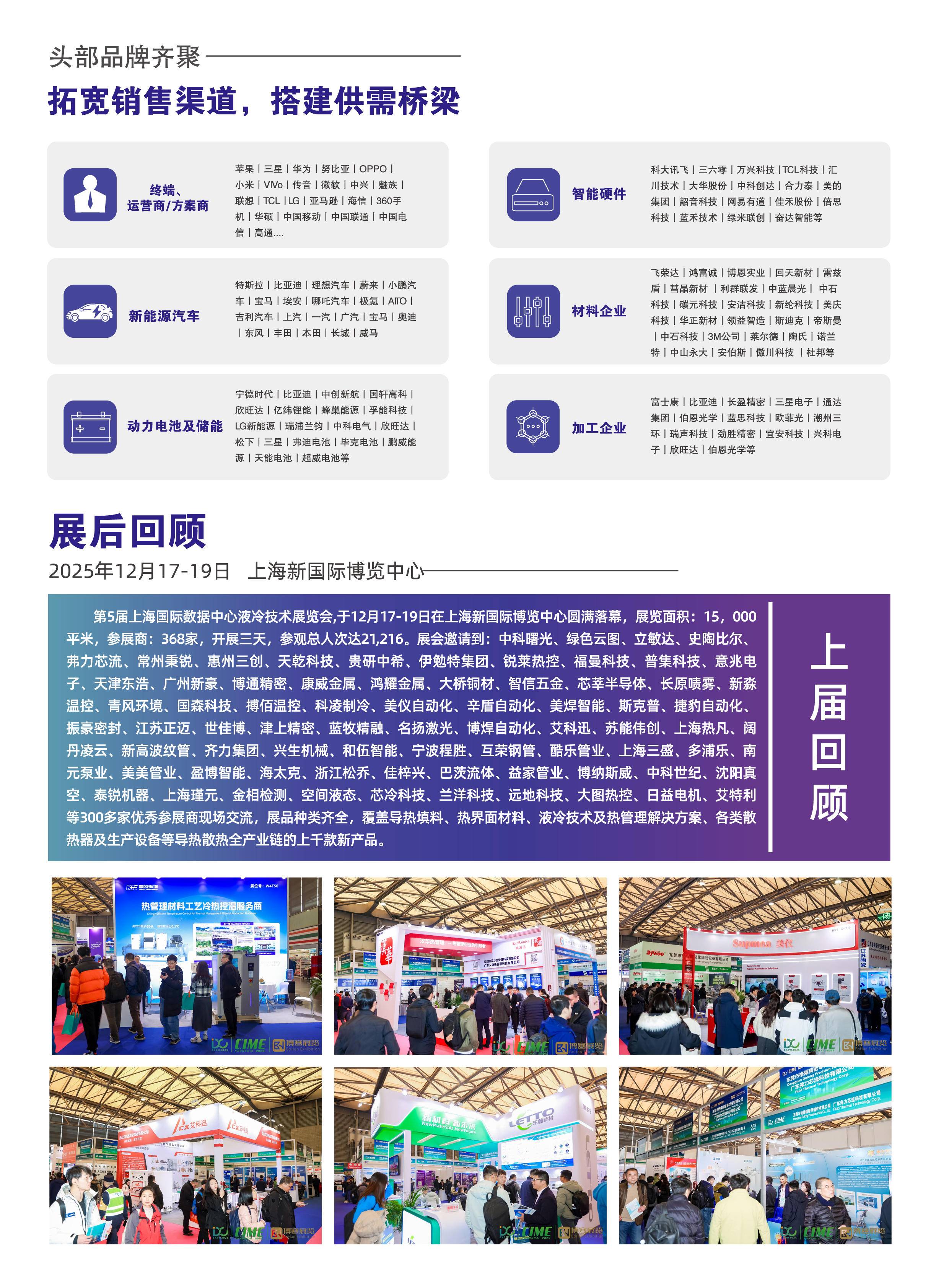 上届上海热管理相关展会于2025年12月17日至19日在上海新国际博览中心圆满落幕,展览面积达15000平方米,吸引368家参展商参展,三天累计接待参观观众21216人次。中科曙光、绿色云图、立敏达、史陶比尔等300多家优秀企业亮相现场,展品种类齐全,覆盖导热填料、热界面材料、液冷技术及热管理解决方案、各类散热器及生产设备等导热散热全产业链的上千款新产品,充分展现了行业发展活力与创新成果,也为2026上海热管理展的顺利举办奠定了坚实基础。