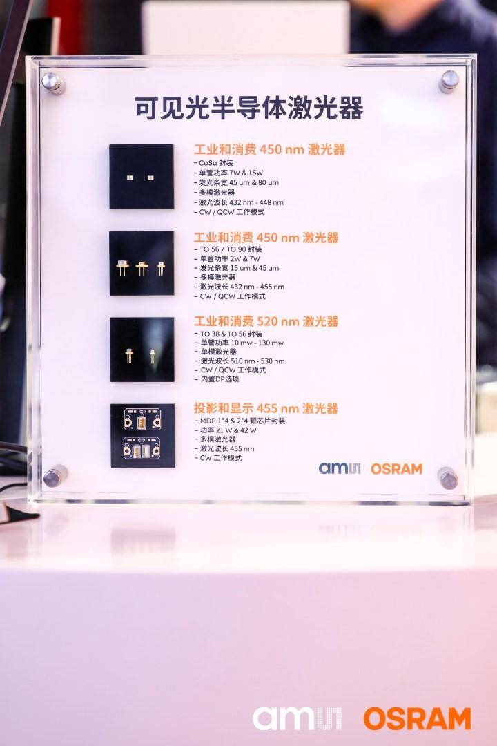 艾迈斯欧司朗工作人员现场介绍两款蓝激光产品,诠释如何以精准光源回应多元应用需求