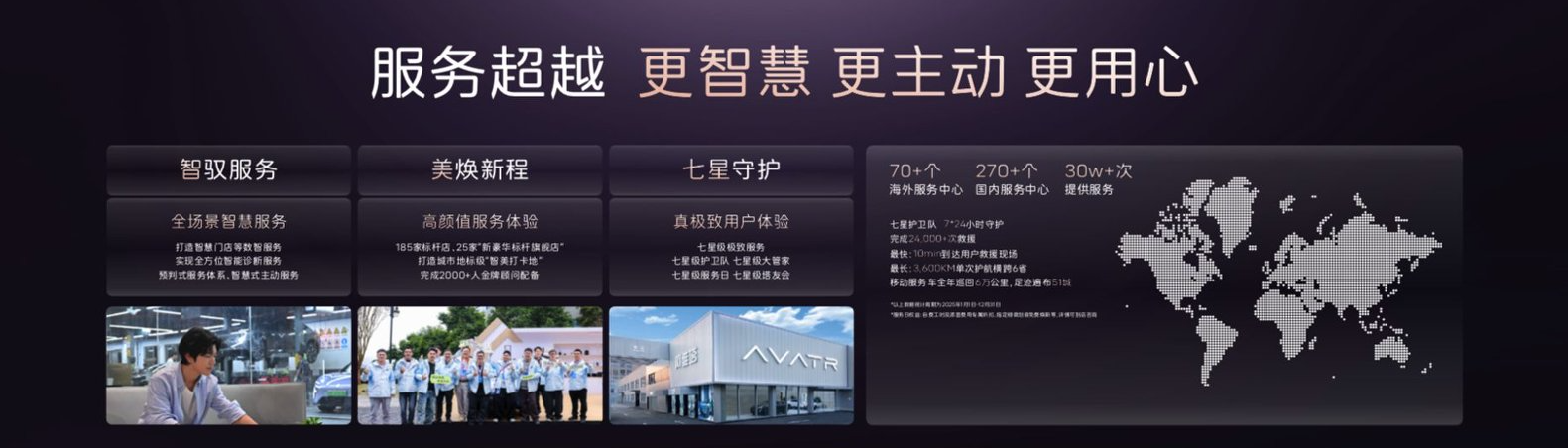 服务层面,阿维塔打造智美七星服务体系,全国布局270家服务中心,提供24小时救援、主动挪车避险、疲劳驾驶唤醒等专属服务,累计完成超30万次服务、2.4万次救援,最远单次护航达3600公里,从购车、用车到后期维保,实现全周期贴心护航,让用户尽享高端豪华品牌的专属服务礼遇。