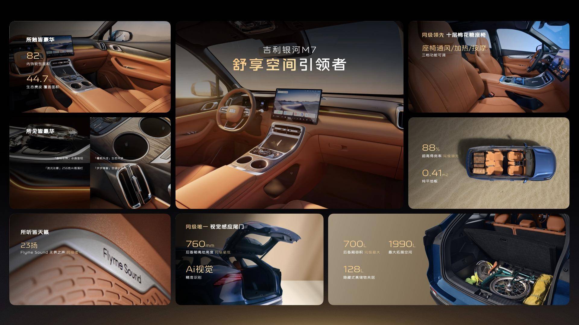 2000W独立功放、23扬声器的Flyme Sound无界之声,配合双层夹胶静音玻璃——这些放在豪华品牌上值得大书特书的配置,银河M7给得毫不犹豫。