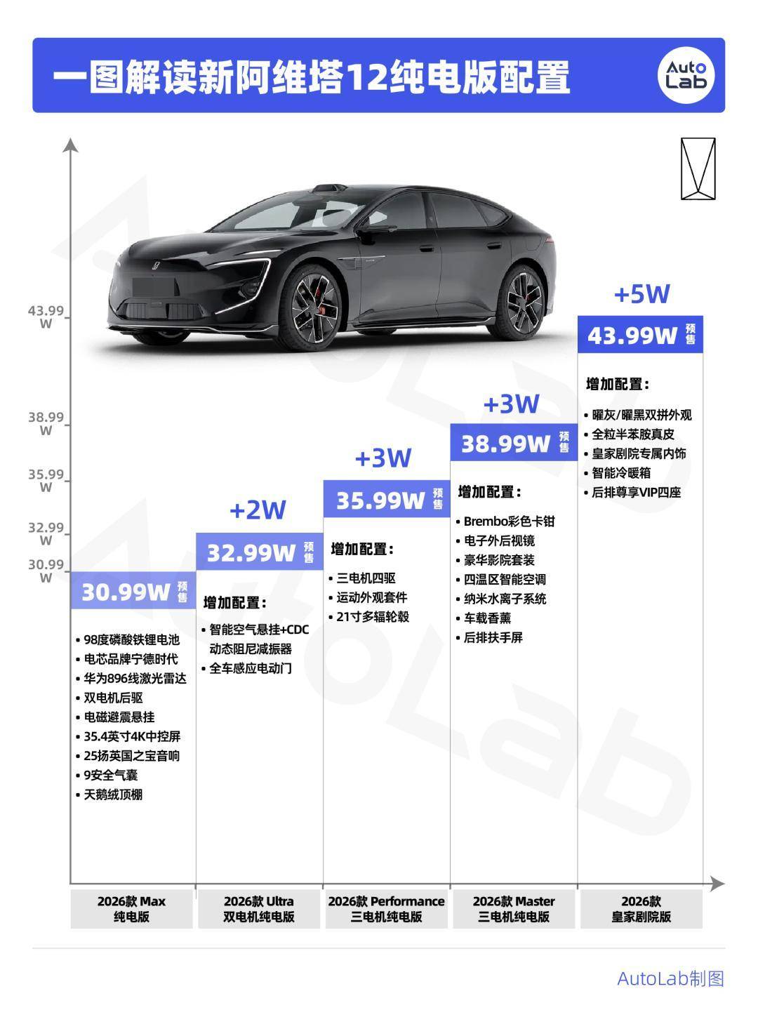 先说大家最关心的价格,新阿维塔12预售价是29.99万到43.99万。