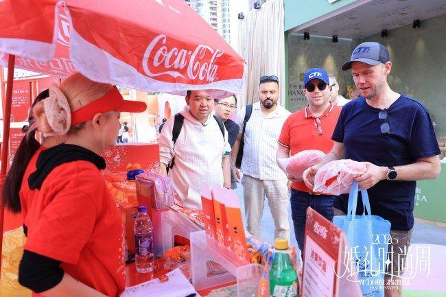 与以往传统婚展不同,本届时尚周更侧重于场景体验与灵感激发。现场特色摊位互动,激发备婚灵感,众多年轻情侣并非单纯比价采购,而是将逛展视作一次“婚礼理念的探索之旅”。他们穿梭于风格各异的品牌展位间,认真咨询、细致体验,表现出对婚礼品质与个性表达的强烈诉求。