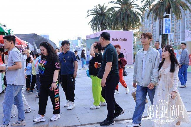 本届婚尚会选址广州城市地标——广州塔下的广州塔广场2楼平台,以其独特的露天形式与时尚婚礼内容设计,成功吸引大量市民尤其是年轻适婚群体前来参与。现场人流持续高位,创下华南地区户外主题婚展客流新高,彰显出“甜蜜经济”在年轻消费力驱动下的蓬勃活力。