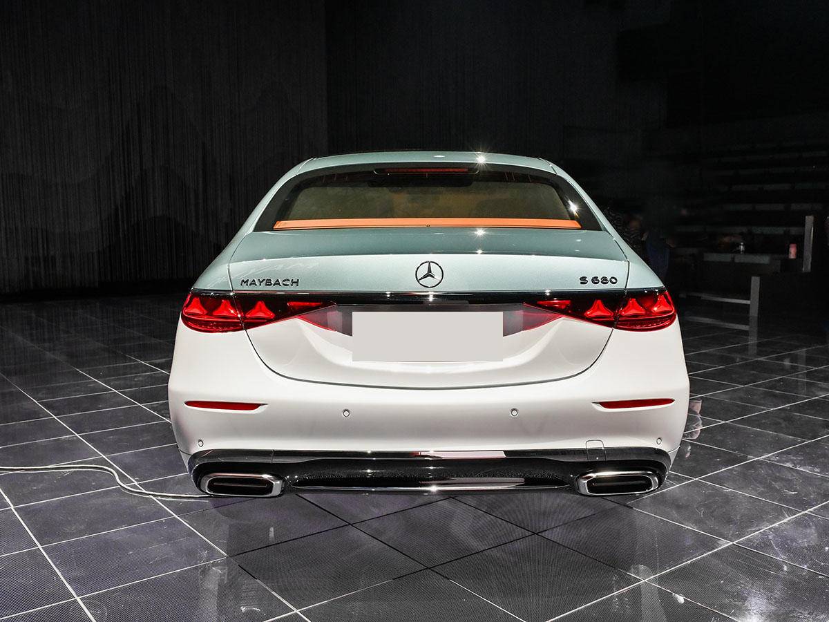 外观部分,新款车型的前脸进行了重新设计,全新的大灯造型和改款奔驰S级基本一致,内部使用了全新的三叉星风格日行灯,并且还带有迈巴赫车标。中网使用了大嘴式风格,视觉效果很霸气,内部是直瀑式镀铬格栅。前杠两侧的中网使用了阵列式布局的迈巴赫车标装饰,视觉效果很别致。