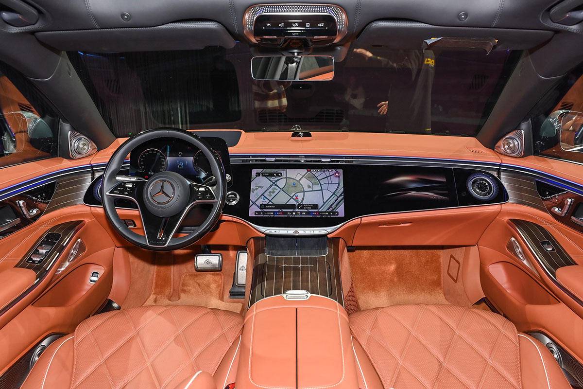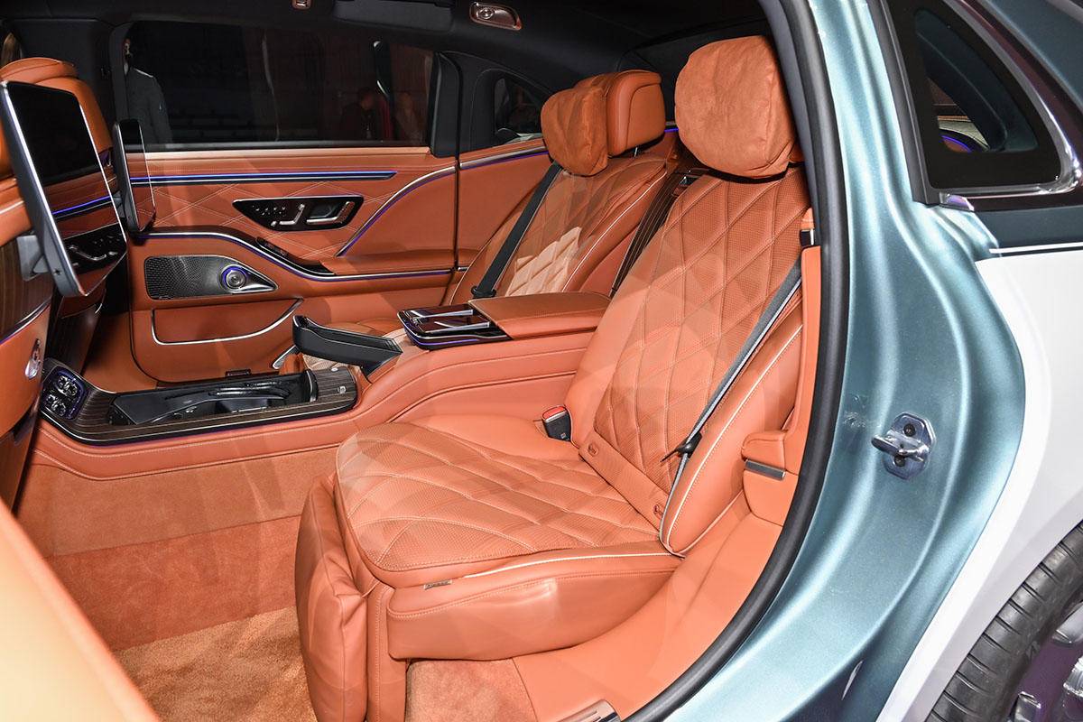 新款车型继续提供4座和5座版本,后排提供了双13.1英寸显示屏,4座版的后排座椅可实现19°至43.5°的大范围角度调节。另外新款车型的前排还使用了加热式安全带,全车搭载15个安全气囊,并额外搭配2个PRE-SAFE侧碰保护气囊及2个后排安全带气囊。