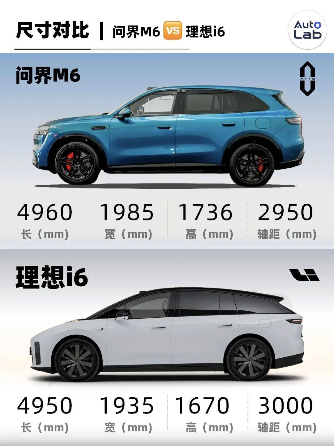 如果拿它和目前讨论度很高的理想i6对比,M6在长宽高上其实都有一定优势,不过在轴距上要短大约50mm。
