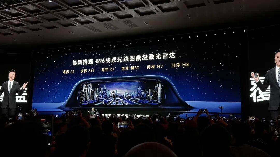 问界M6、M7、M8,智界S7、R7,享界S9、S9T,尚界Z7、Z7T,智界V9……从SUV到轿车,从猎装车到MPV,鸿蒙智行全系车型,一夜之间完成了激光雷达的集体换装。