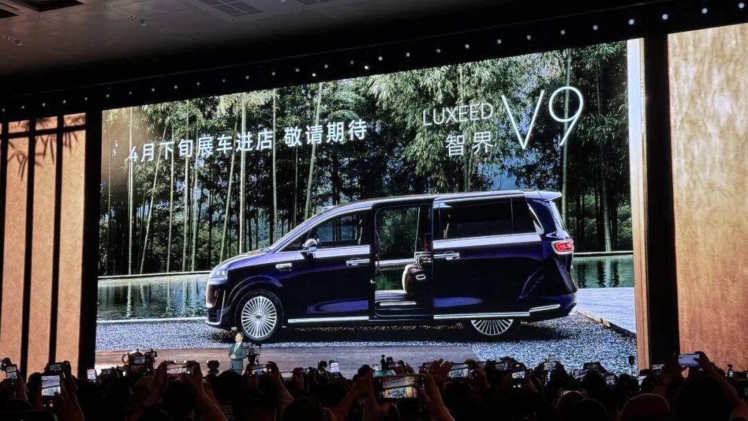 在发布会末尾的 “one more thing” 环节,预热已久的智界V9终于迎来了首次的实车亮相,并确认将于四月下旬正式进店。