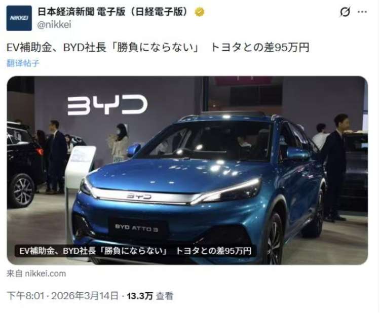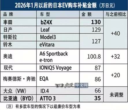 从实际结果看,丰田、日产、铃木还有特斯拉这些日系和美系品牌,那可是享受着高额补贴红利,可咱们中国的比亚迪呢,就被区别对待了。就拿比亚迪旗下元PLUS(ATTO 3)等四款纯电车型来说,补贴一点都没上调,还维持在35万至45万日元区间。和日系、美系同级车型那高达127万至130万日元的补贴一比,差距最大能达到95万日元!
