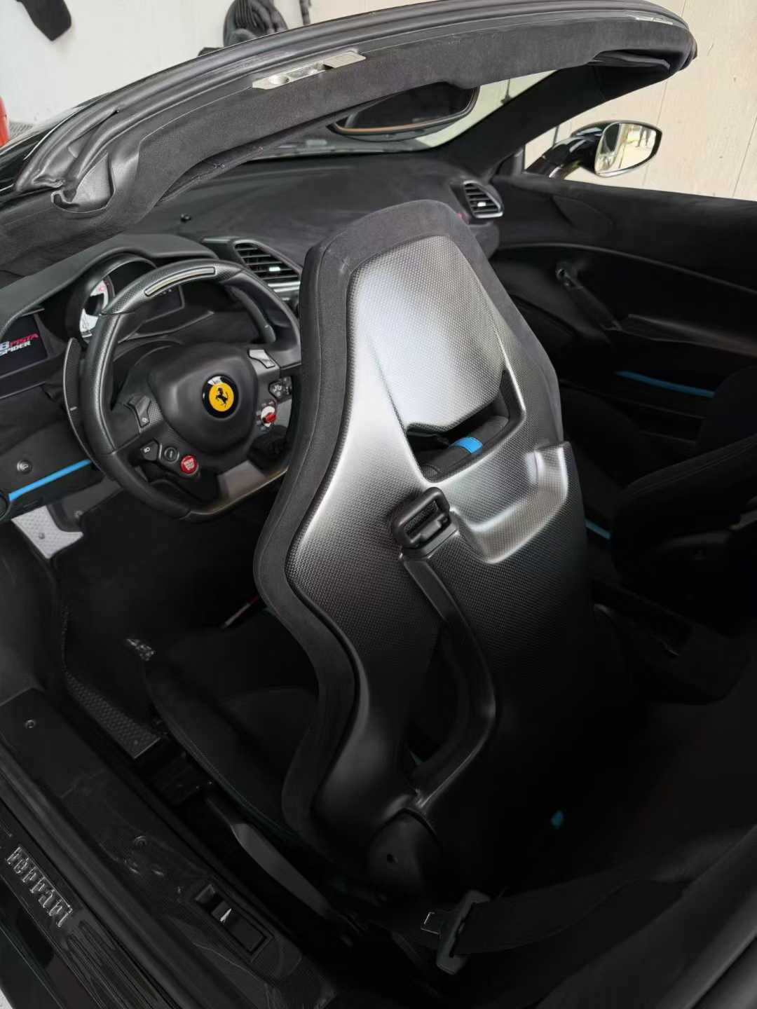 这是一台2019年落户的法拉利488(参数|询价) Pista Spider。1.6万公里,对于一台跃马来说,恰好处在一个微妙的时间点上——它早已褪去了新车时那种小心翼翼的拘谨,机械部件完成了最完美的磨合,却又远未到谈年份、论衰老的时候。此刻的它,是一种收敛着的、克制的巅峰状态。