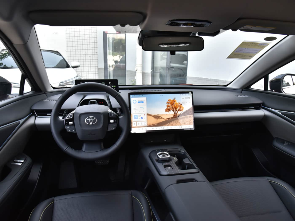 坐进内饰,简约科技风直接拉满。15.6英寸悬浮中控屏+窄幅液晶仪表,搭配旋钮式换挡,科技感十足,车机搭载丰田智行互联3.0,5G网络、AR实景导航、语音控制一应俱全,还支持华为HiCar、苹果CarPlay,流畅好用不卡顿。