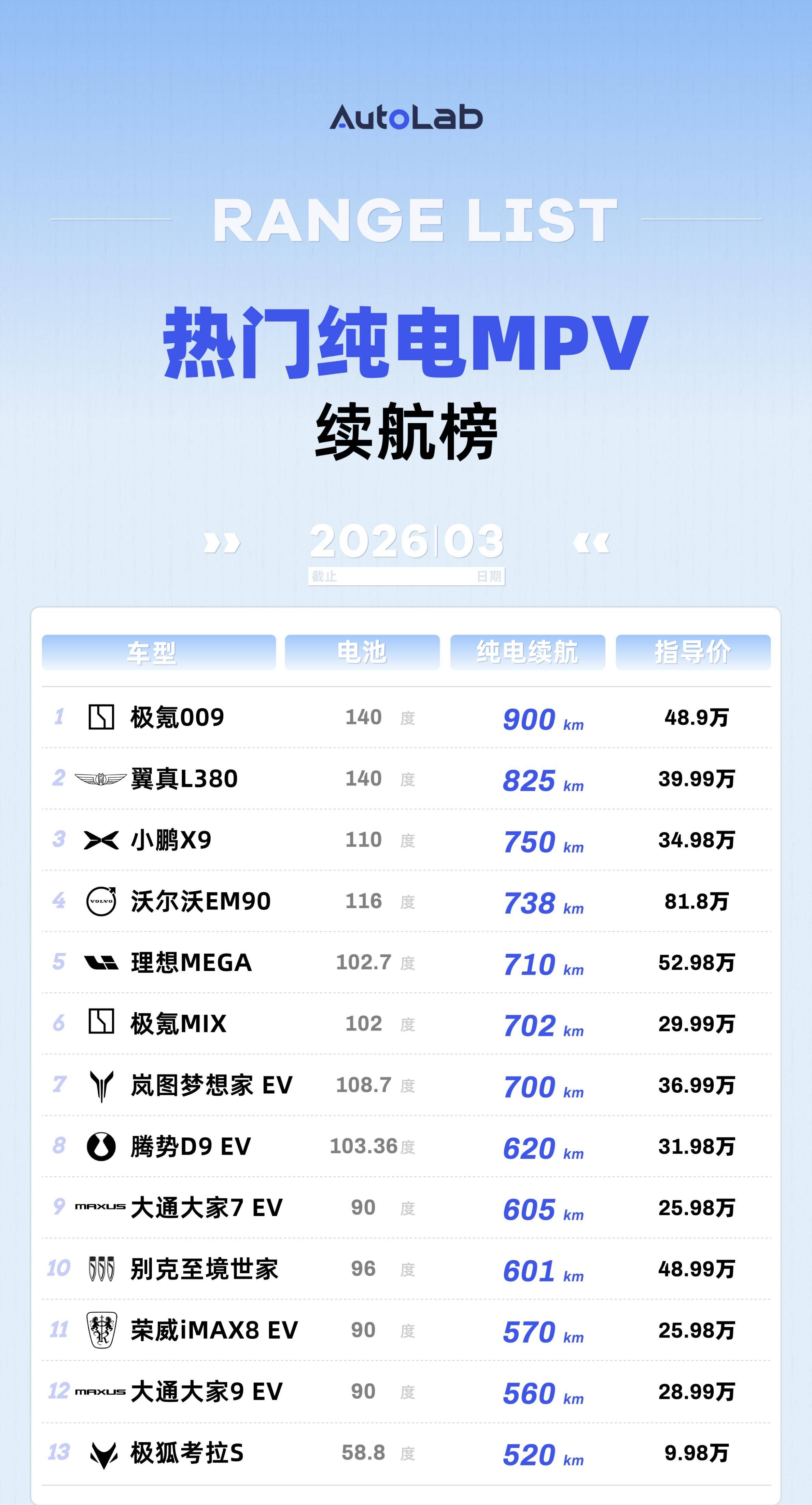 热门纯电MPV续航榜