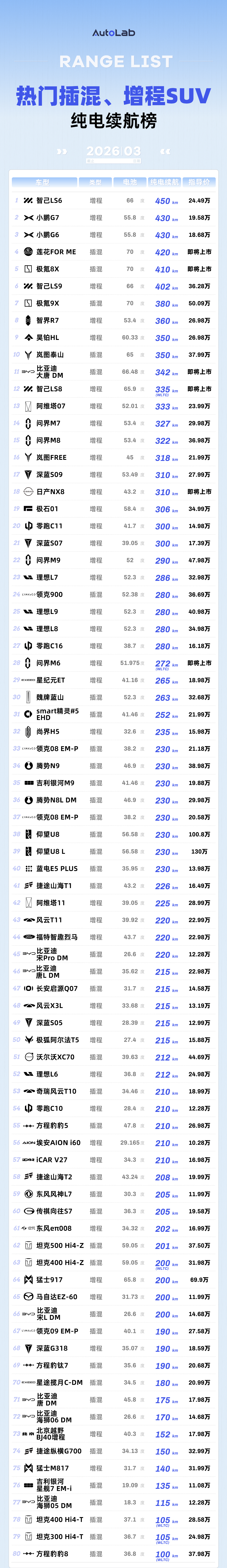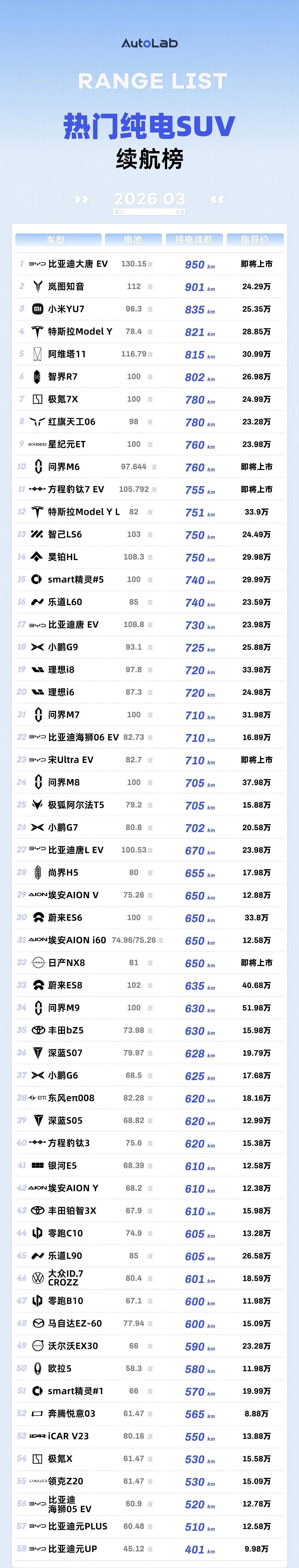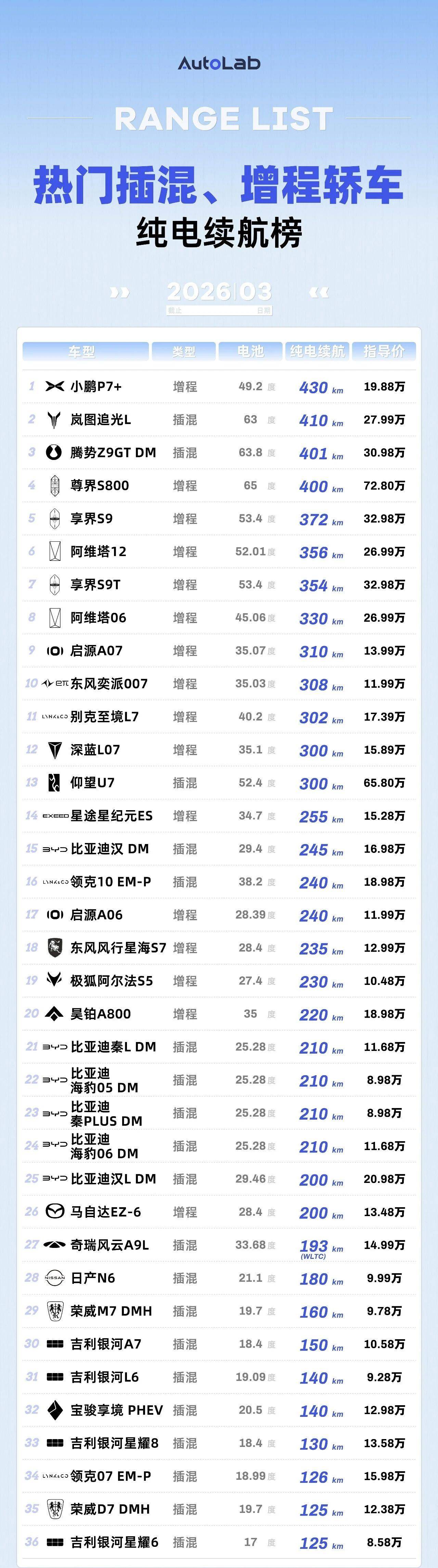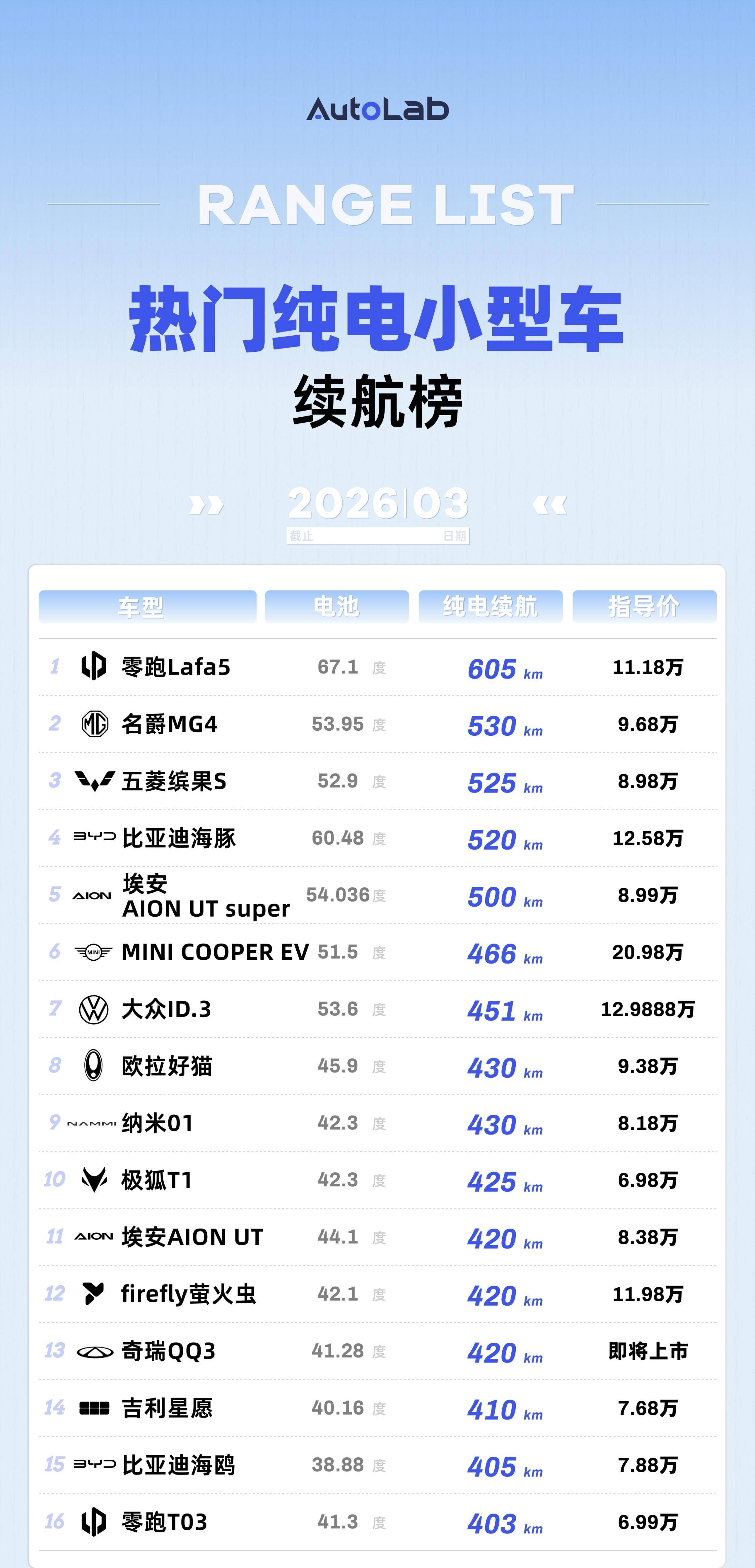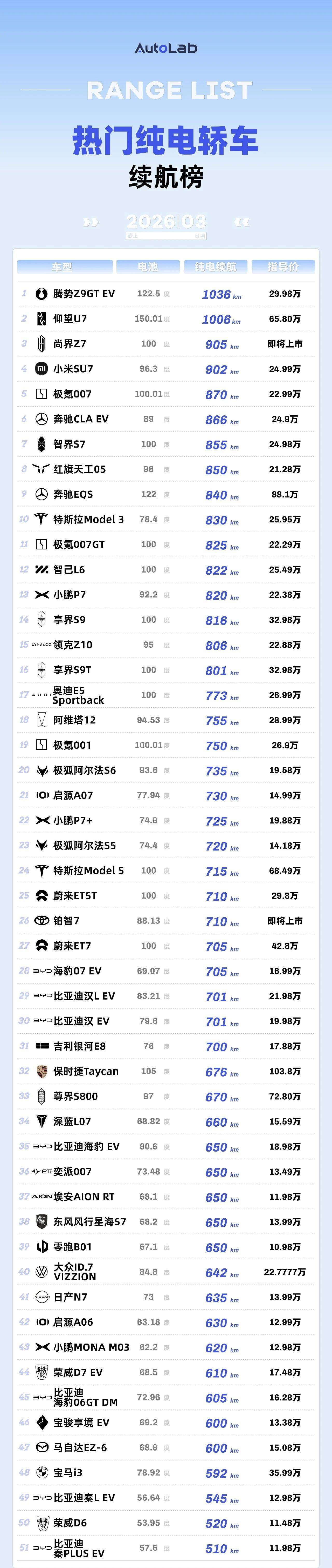 3月LAB续航榜:油价涨上天,纯电车的好日子真来了?