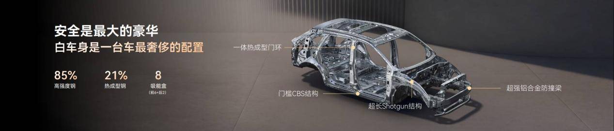 风云T9L基于奇瑞全球化原生新能源专属架构打造,彻底区别于燃油车改造架构,从设计源头适配混动车型需求。车身采用磐石笼式吸能太空舱设计,整车高强钢占比高达85%,热成型钢占比21%,满足全球7大最严安全标准,发生碰撞时可高效分散冲击力,最大限度保障座舱完整性。