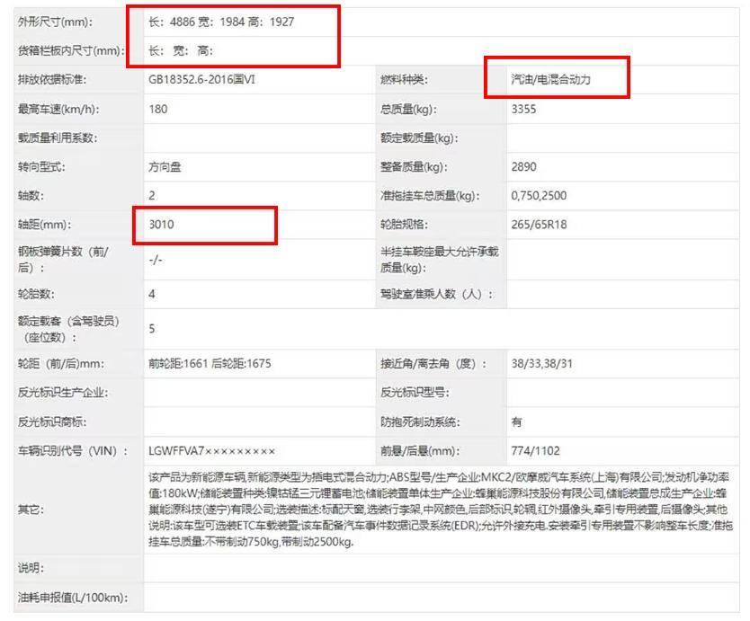 现款坦克300被不少用户诟病的后排空间问题,在新款上得到了解决。申报信息显示,新车长宽高分别为4886/1984/1927mm,轴距达到3010mm。相比现款,车长增加了136mm,轴距也有明显加长。